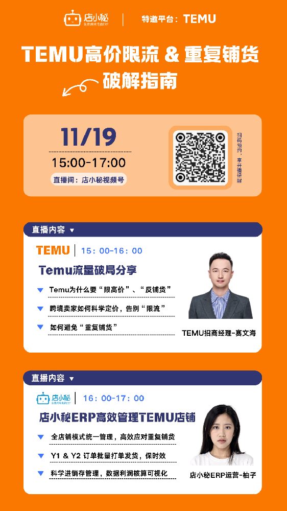 🚨 11月19日(周三)下午3点,锁定店小秘视频号直播间:
